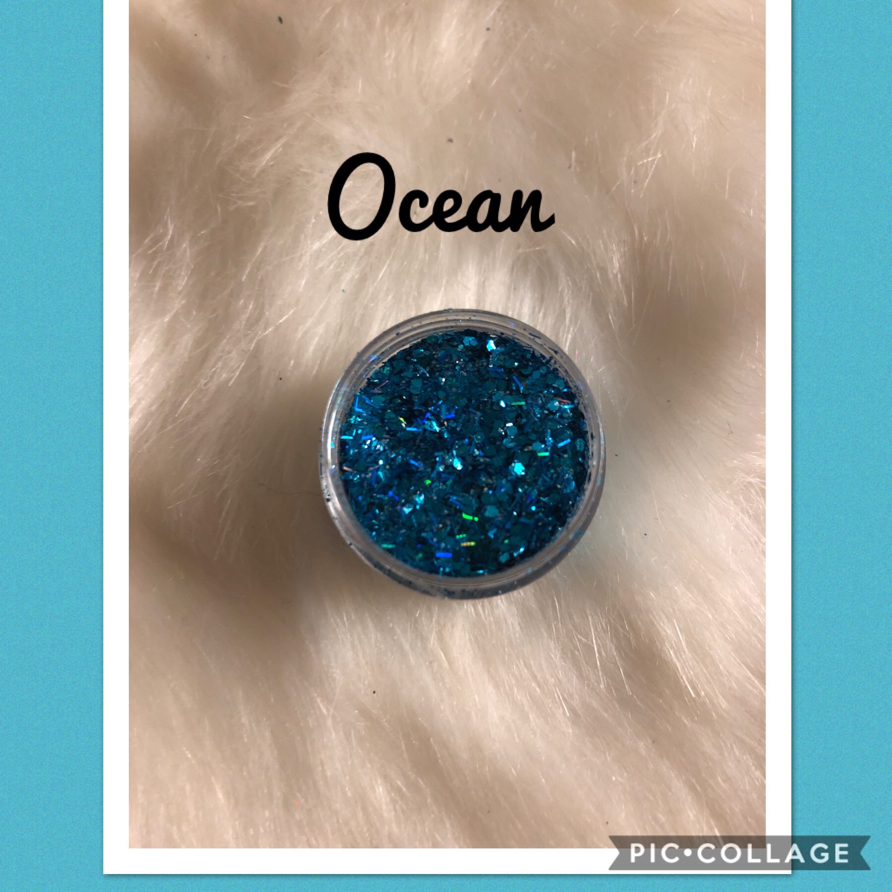 Fine and chunky cosmetic glitters that can be used for eyeshadow,face, body and nails.