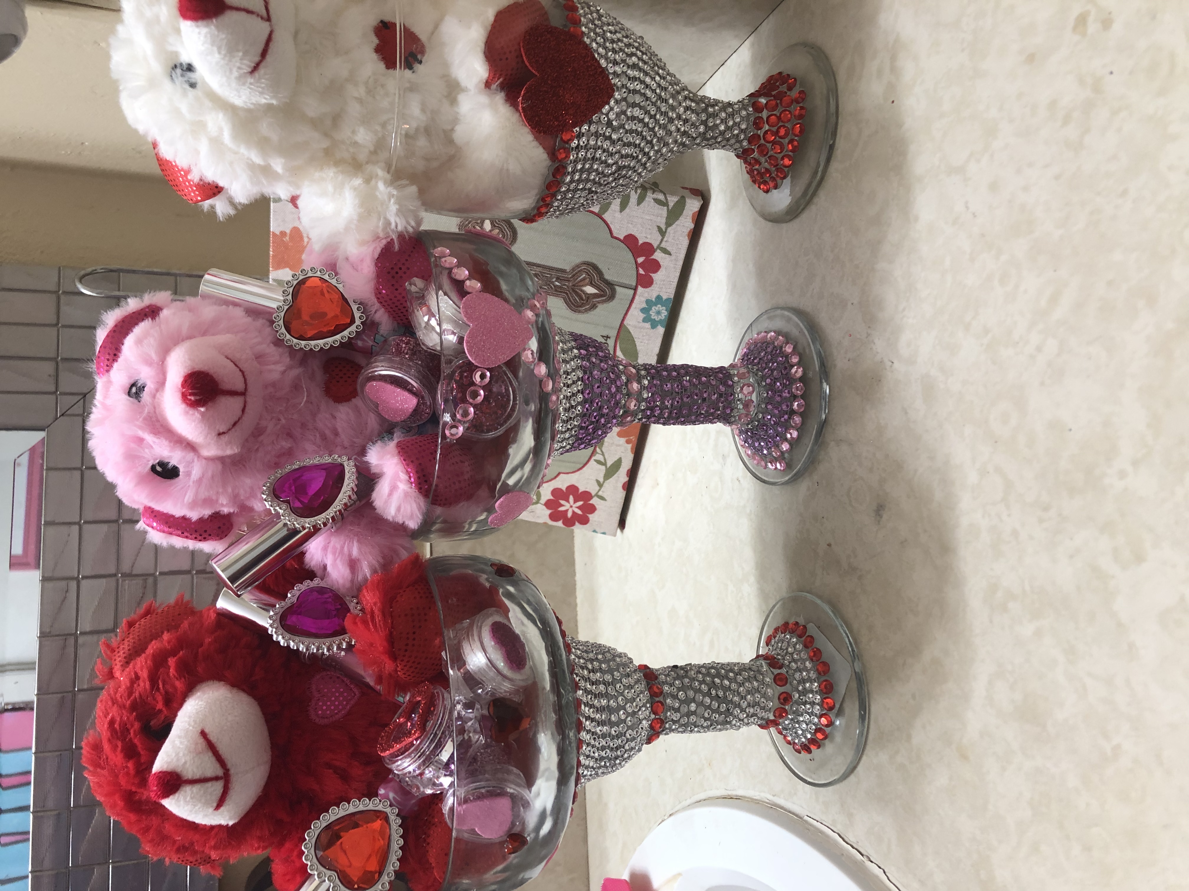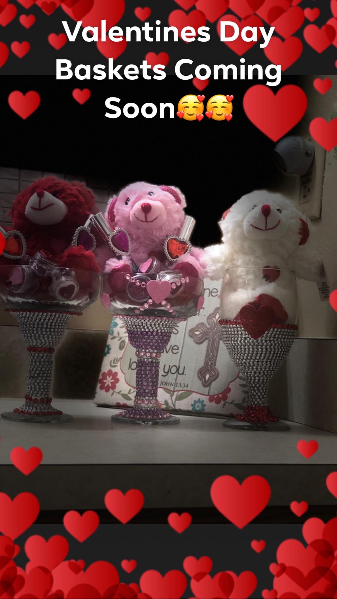 VALENTINE'S DAY BASKETS with CUSTOM MADE and BLINGED OUT WINE GLASSES! Includes 2 Lip Lusters, 3 Glitters, Milk Chocolate candy,Roses and Gem Stones! A lovely gift for yourself or your loved one!!🥰🥰🥰
