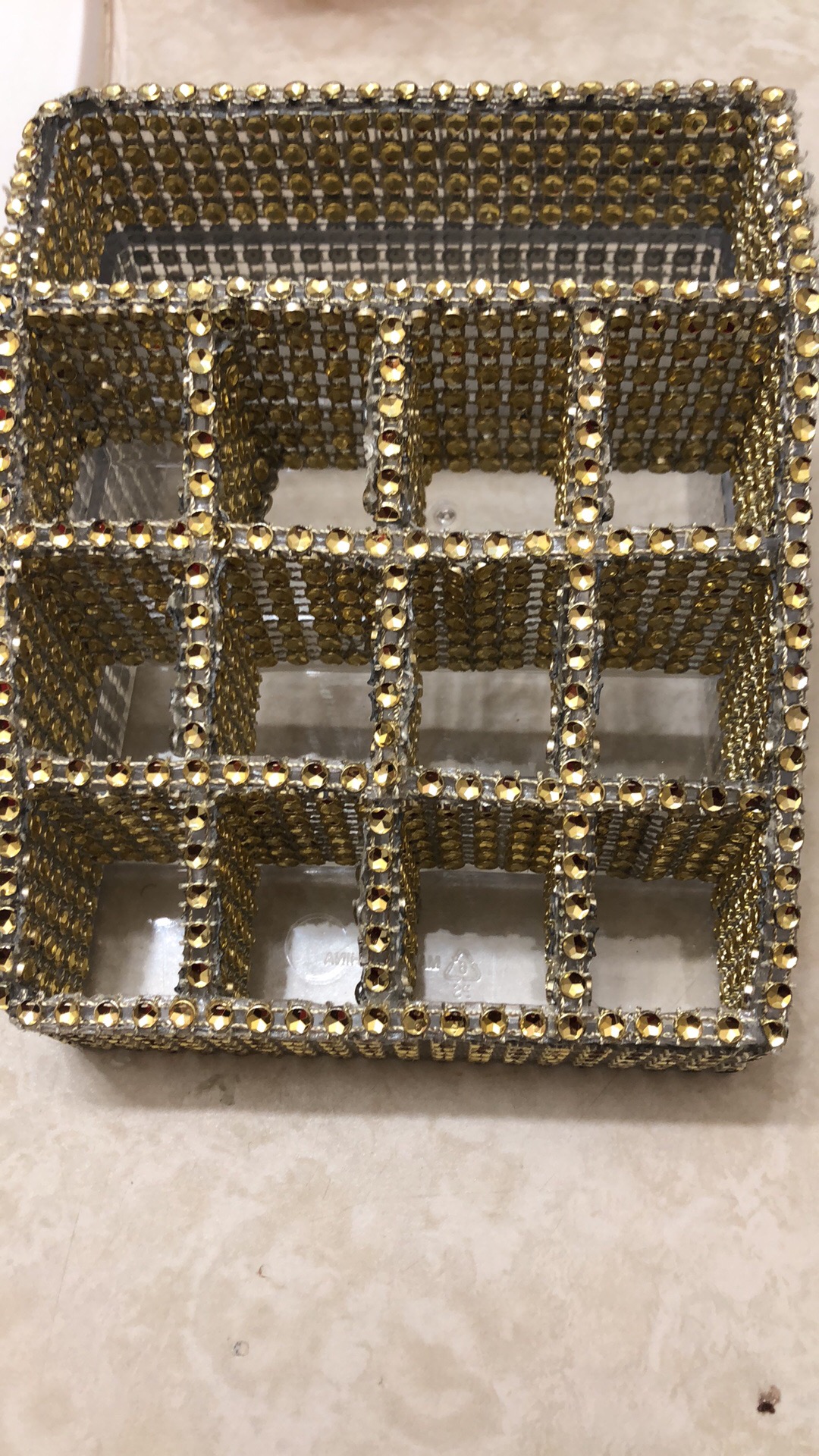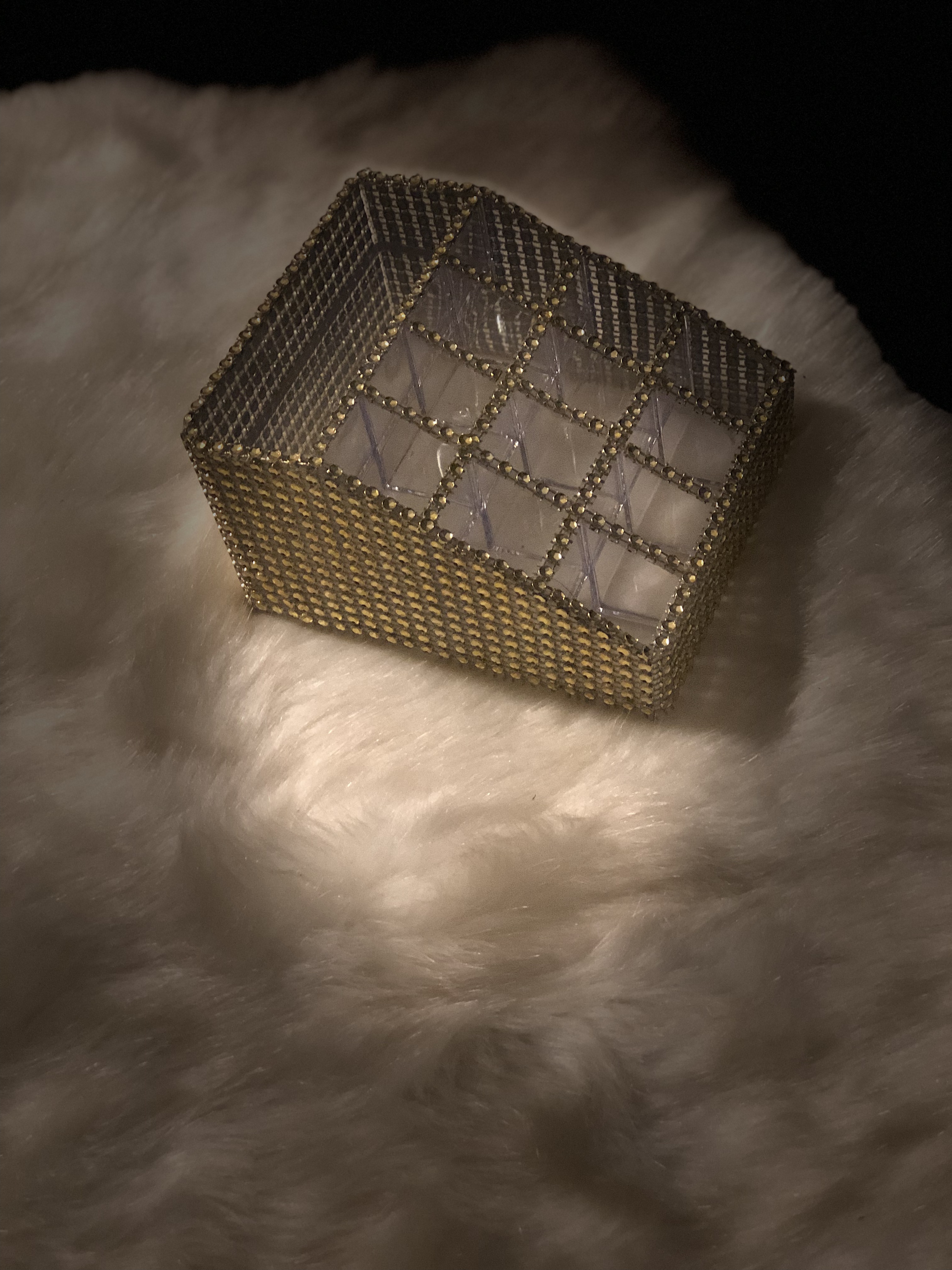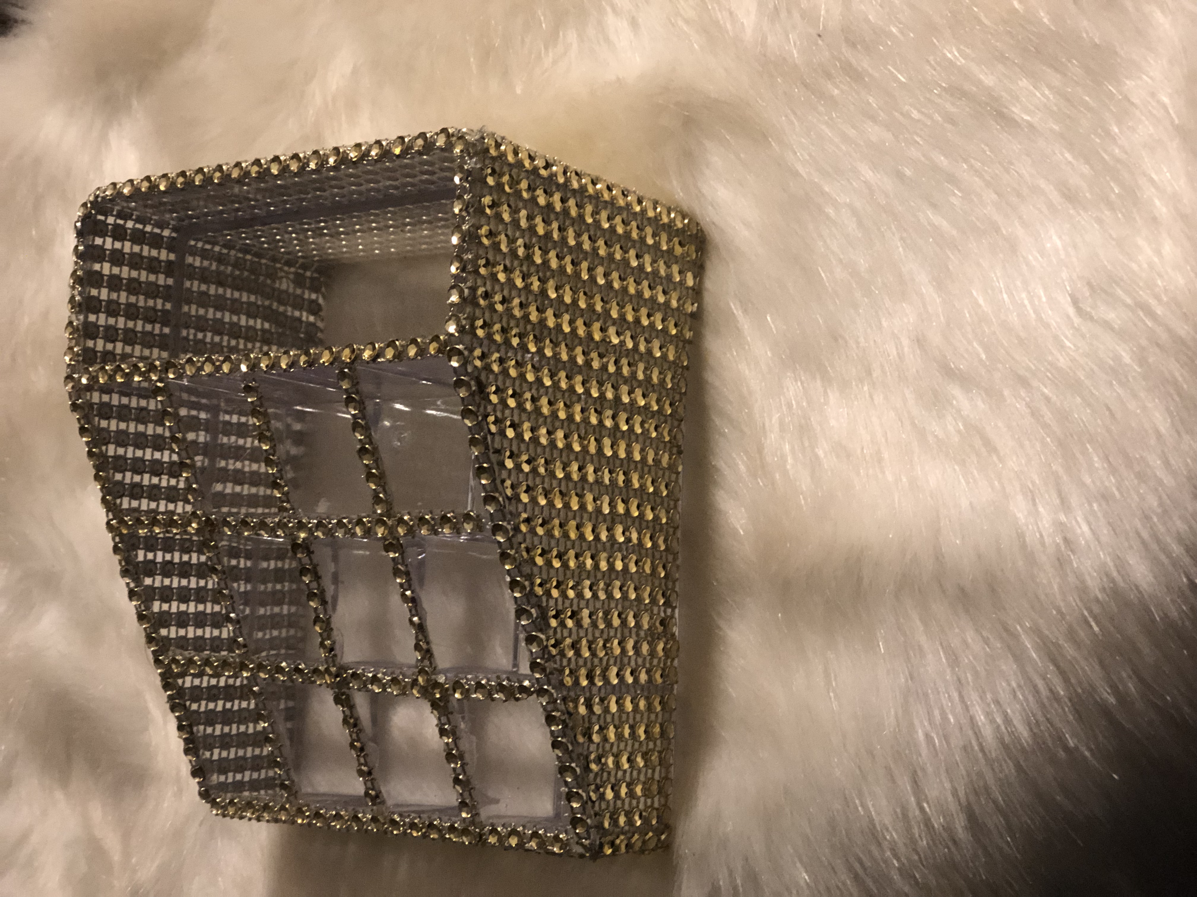 Custom blinged out makeup organizer that holds 12 lipgloss/lipsticks. With additional compartment for brushes and makeup tools.