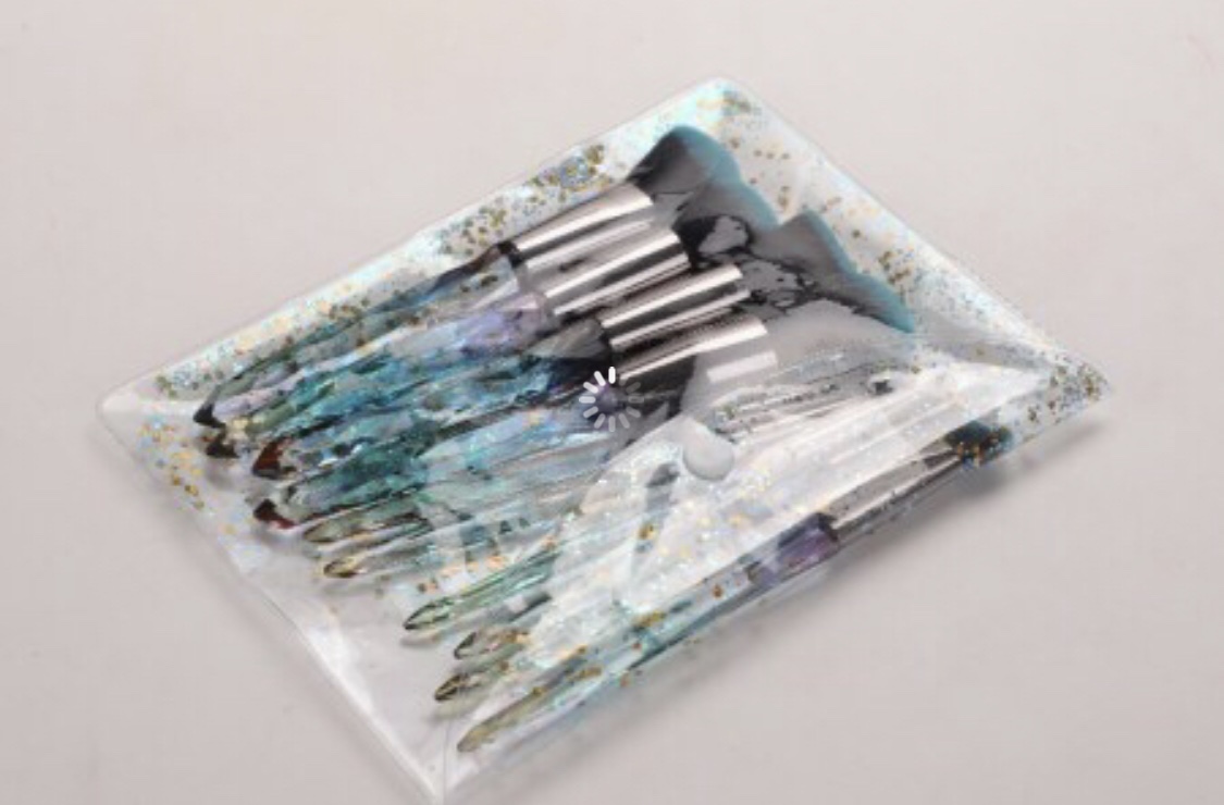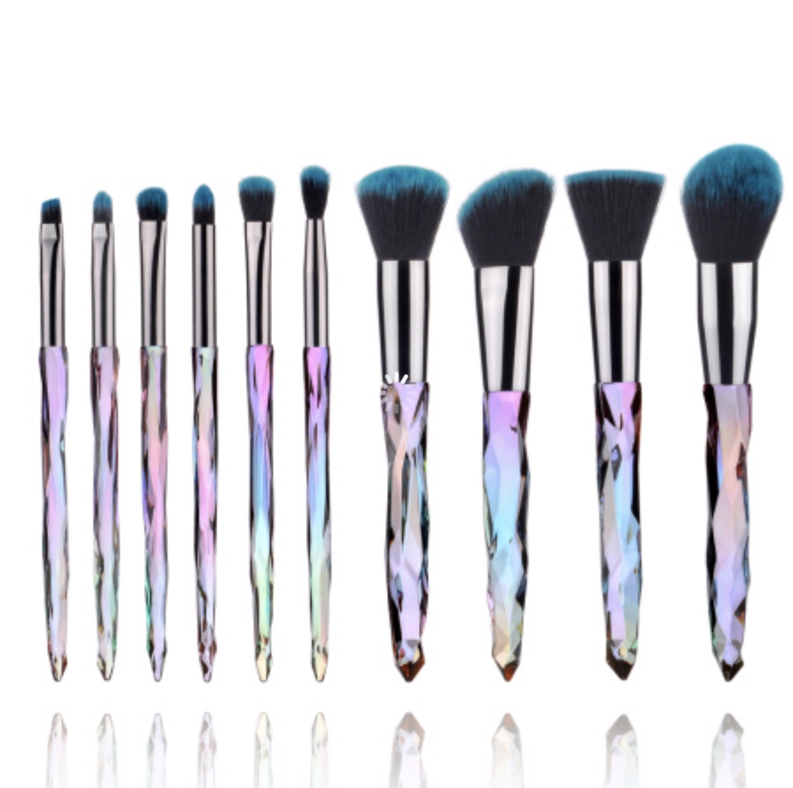 10 pc crystal brush set. A brush to complete your entire makeup application. They are very soft and sturdy.