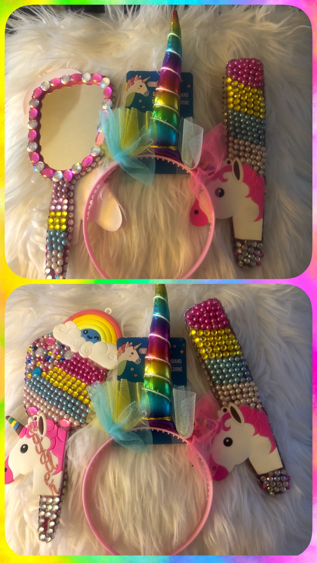 Kids blinged brush and mirror sets